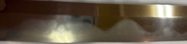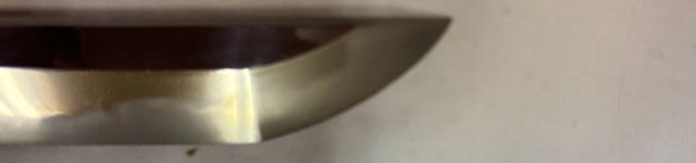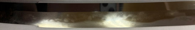 | 刀長 64.5cm(2尺1寸3分) 反り 2.0cm(6分5厘) 元幅 2.73cm 先幅 2.18cm 元重 5.2mm 先重 4.3mm 刀身重量裸身600g 茎 摺上 目釘穴 2 刃文 互ノ目丁子 |