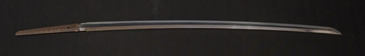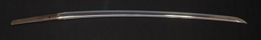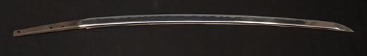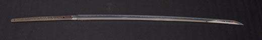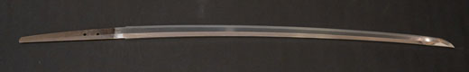 刀長 68.7cm(2尺2寸7分) 反り1.52cm(5分0厘)元幅 3.1cm 先幅 2.54cm 元重 7.6mm 先重 5.8mm 刀身重量 850g 鞘を払って1,150g 茎 生 目釘穴 1 刃文 直刃 |