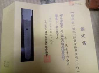 二代金道の作である。地金小板目肌やや肌立つ。刃紋小沸出来 沸足入り所々砂流し金線入る。