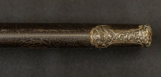 | 刀長 74.5cm(2尺4寸6分) 反り 0,9cm(3分-厘) 元幅 3.20cm 先幅 2.43cm 元重 8.7mm 先重 5.9mm 刀身重量裸身-g 鞘を払って1,240g 茎 生 目釘穴 1 刃文 直刃 |
