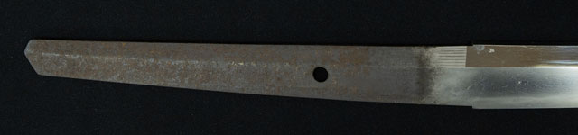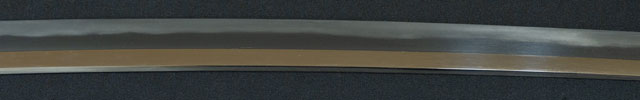 | 刀長 70.0cm(2尺3寸1分) 反り 1.2cm(4分) 元幅 3.3cm 先幅 2.56cm 元重 6.9mm 先重 5.5mm 刀身重量 裸身 810g 鞘を払って 1,100g 茎 生 目釘穴 1 刃文 互ノ目 |