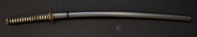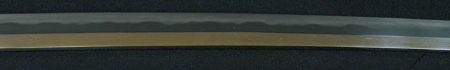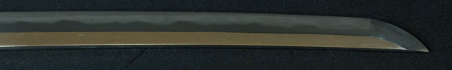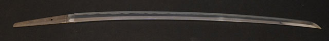 | 刀長 70.9cm(2尺3寸4分) 反り 1.6cm(5分3厘) 元幅 3.02cm 先幅 2.2cm 元重 7.5mm 先重 5.4mm 刀身重量 裸身 800g 鞘を払って 1,120g 茎 生 目釘穴 1 刃文 互ノ目丁子 |
