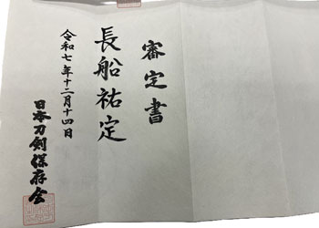 | 刀 備州長船祐定作 永禄十三年八月日 |