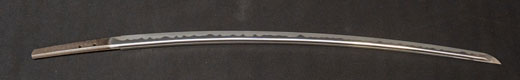 | 刀長 57.8cm(1尺9寸0分) 反り0.5(1分6厘) 元幅 2.97cm 先幅 2.22cm 元重 5.8mm 先重 4.8mm 刀身重量 裸身570g 茎 生 目釘穴 2 刃文丁子刃 |