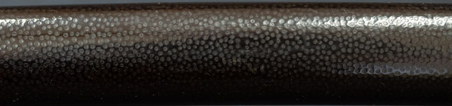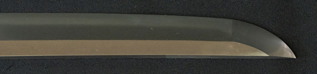 刃紋直刃小沸厚く付き刃冴える。地金小板肌良く錬る。 |