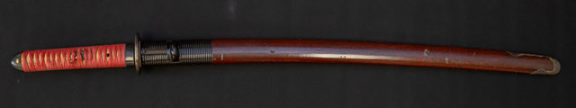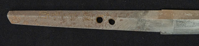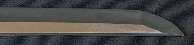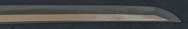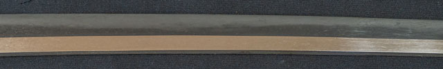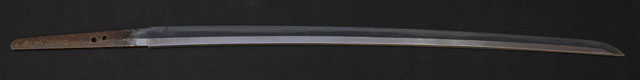 | 刀長 52.0cm(1尺7寸1分) 反り 0.8cm(2分4厘) 元幅 2.49cm 先幅 1.87cm 元重 5.5mm 先重 4.4mm 刀身重量裸身350g 鞘を払って580g 茎 生 目釘穴 1 刃文 のたれ |