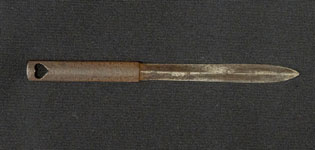 幕末、幕府はフランス式調練を取り入れ旗本の次男三男を採用してズボンを履かせてベルトを締めてベルトにポケットを付けそこに刀を差し込んだ為鞘の先が入りやすいように尖っている。5年頃しか制作しなかったので数が少なく貴重品である。