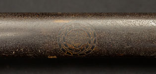 | 刀長 74.5cm(2尺4寸6分) 反り 0,9cm(3分-厘) 元幅 3.20cm 先幅 2.43cm 元重 8.7mm 先重 5.9mm 刀身重量裸身-g 鞘を払って1,240g 茎 生 目釘穴 1 刃文 直刃 |