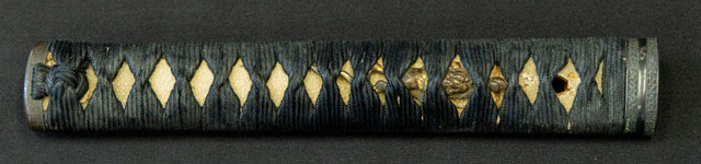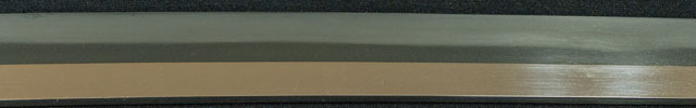 | 刀長 67.1cm(2尺2寸1分) 反り 1.4cm(4分6厘) 元幅 3.26cm 先幅 2.38cm 元重 7.5mm 先重 5.0mm 刀身重量 裸身 750g 鞘を払って1,100g 茎 生 目釘穴 1 刃文 直刃 |