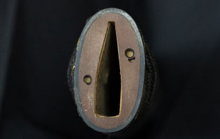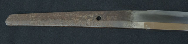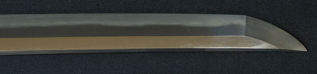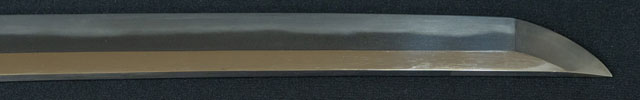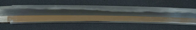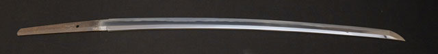 | 刀長 70.0cm(2尺3寸1分) 反り 1.2cm(4分) 元幅 3.3cm 先幅 2.56cm 元重 6.9mm 先重 5.5mm 刀身重量 裸身 810g 鞘を払って 1,100g 茎 生 目釘穴 1 刃文 互ノ目 |