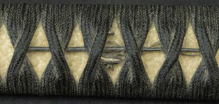 | 三品吉信初代大和守吉道門 互ノ目乱新刀らしく帽子直刀 地金小板目肌良く錬れ足刃先まで入る。葉所々入り出来が良い。 |