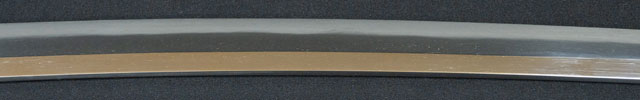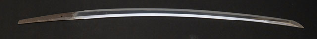 | 刀長 68.9cm(2尺2寸3分) 反り 2.1cm(7分) 元幅 3.13cm 先幅 2.48cm 元重 7.7mm 先重 5.8mm 刀身重量裸身820g 鞘を払って1,080g 茎 生 目釘穴 1 刃文 直刃 |