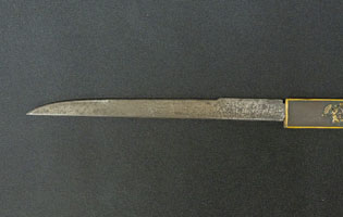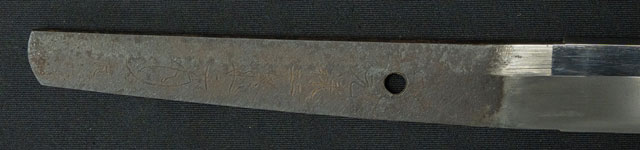 | 刀長 56.0cm(1尺8寸4分) 反り 1.2cm(-分-厘) 元幅 -cm 先幅 -cm 元重 -mm 先重 -mm 刀身重量裸身-g 鞘を払って-g 茎 生 目釘穴 1 刃文 濤乱刃 |
