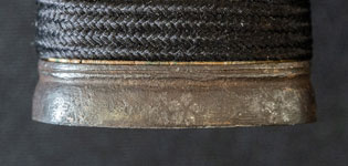 | 刀長 71.7cm(2尺3寸7分) 反り 1.9cm(6分3厘) 元幅 3.10cm 先幅 2.51cm 元重 6.7mm 先重 5.4mm 刀身重量裸身670g 鞘を払って1.130g 茎 生 目釘穴 1 刃文 乱刃 |