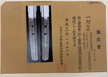 | 刀 銘備前国住長船盛光作 応永二年八月吉日 天正九年上摺之也 |