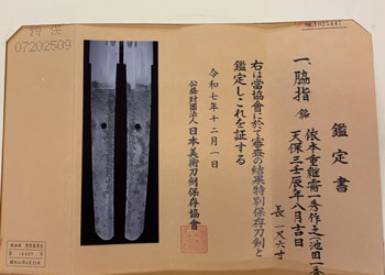 | 脇指 銘 依本重継需一秀作之 天候三壬生辰年八月吉日 |