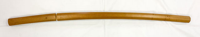 | 刀長 71.7cm(2尺3寸6分) 反り 1.6cm(5分2厘) 元幅 3.08cm 先幅 2.41cm 元重 8.5mm 先重 6.3mm 刀身重量 裸身 900g 鞘を払って1,200g 茎 生 目釘穴 1 刃文 直刃 |