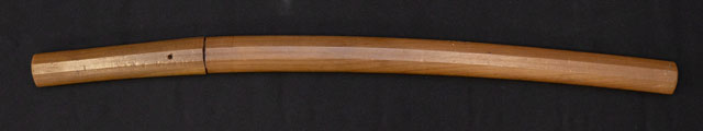 | 刀長 45.0cm(-尺-寸-分) 反り 0.6cm(-分-厘) 元幅 2.88cm 先幅 2.36cm 元重 6.4mm 先重 5.4mm 刀身重量裸身-g 鞘を払って-g 茎 生 目釘穴 1 刃文 互ノ目乱 |