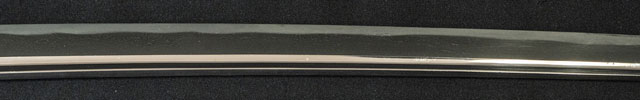 | 刀長 75.5cm(2尺4寸9分) 反り 2.0cm(6分5厘) 元幅 3.16cm 先幅 2.11cm 元重 8.4mm 先重 6.2mm 刀身重量裸身890g 鞘を払って-g 茎 生 目釘穴 1 刃文 乱刃 |