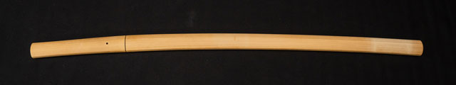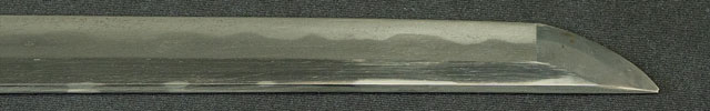 | 刀長 70.2cm(2尺3寸2分) 反り 0.9cm(3分-厘) 元幅 3.16cm 先幅 2.41cm 元重 7.1mm 先重 4.6mm 刀身重量裸身740g 鞘を払って-g 茎 生 目釘穴 1 刃文 乱刃 |